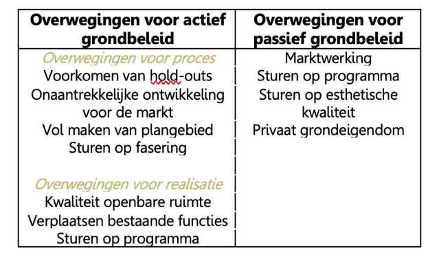Tabel 1. Overzicht van overwegingen om te kiezen voor actief of passief grondbeleid.