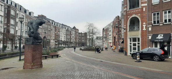 Veel bewoners zetten op een strook van een meter voor hun woning een bankje, plantenpotten of stoelen. We genieten van mooie uitzichten en aantrekkelijke doorkijkjes. Plots zien we een retro-pakhuis, met Franse balkons en imitatieluiken. De panden staan er goed bij. Wel eist één materiaalkeuze zijn tol: randen van beton in plaats van – duurder – natuursteen. Een opvallend lelijk detail aan de gevels, en dat verbetert in de loop van de tijd niet.