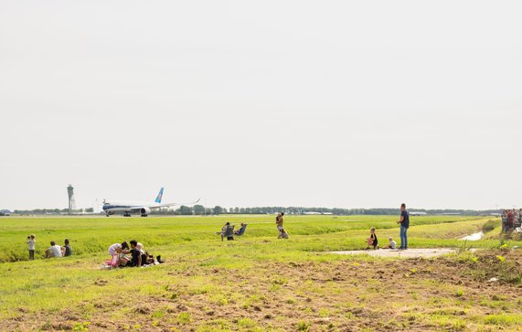 In de media en de landspolitiek is er vooral aandacht voor het al dan niet verder mogen groeien van de luchthaven Schiphol, het (inter)nationaal schaalniveau derhalve. Schrijver Tijs van den Boom en fotograaf Theo Baart gaan in ‘Leven onder het luchtruim’ juist op zoek naar de genius loci van Schiphol, wandelend en fietsend. En concluderen uiteindelijk na ampele overwegingen dat niet de bulder-Buitenveldertbaan dicht zou moeten, maar de Aalsmeerbaan. “Krimp van Schiphol zal immers boven de markt blijven hangen, vroeger of later komt dat een keer langs.”