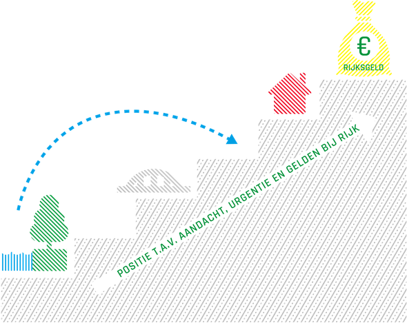 Daarnaast is het van belang om op deze hogere schaal van groenblauw te kijken naar de positionering van het project. Gaat het om regionaal groen? Trek de opgave dan ook regionaal en positioneer het ten opzichte van lopende verstedelijkingsopgaven. Neem het voorbeeld van de aanleg van de A4: daar is vanuit meerdere overheidslagen aan bijgedragen, maar ook een in verhouding klein deel aan middelen ten behoeve van groen en blauw voor gereserveerd.