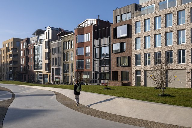 Binnen de klassieke bouwblokken die langs het park verrijzen, springen de vele individuele panden in het oog