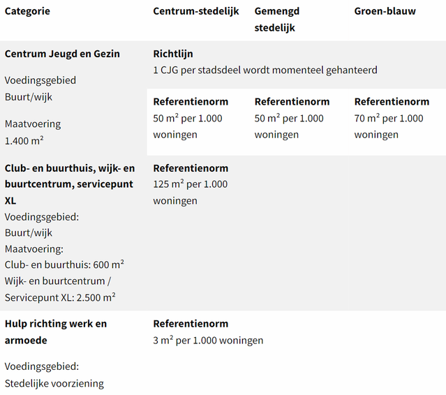 ‘Fragment uit Haagse referentienormen maatschappelijke voorzieningen (2021)’ (bron: platform31)