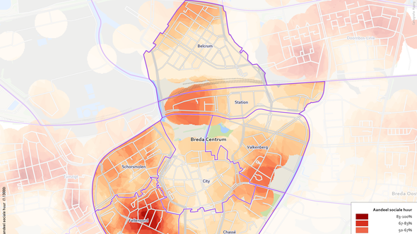 Breda Centrum, aandeel sociale huur. Bron: Springco (tevens de cover)